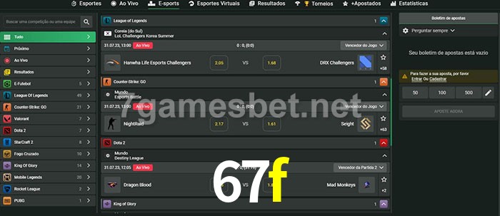 O 67f oferece uma grande seleção de opções de apostas em e-sports com probabilidades competitivas